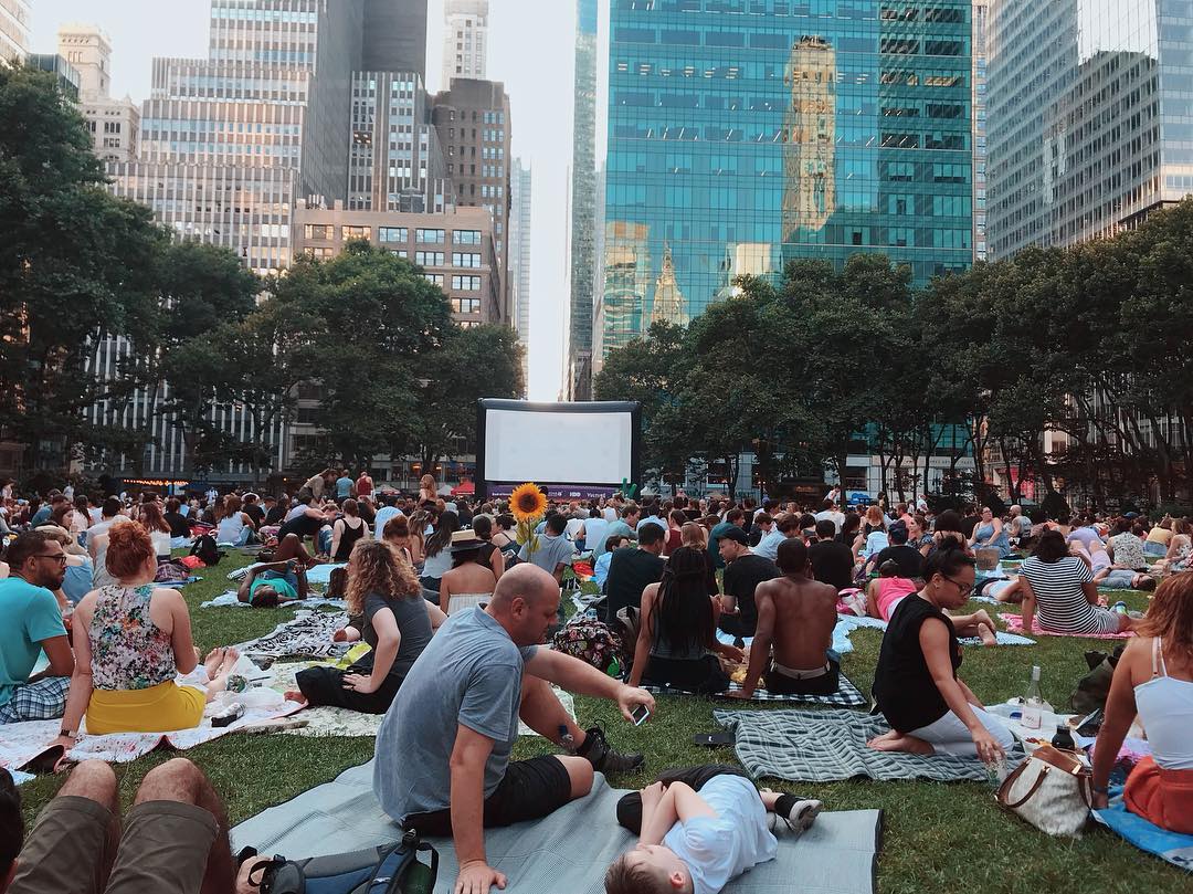- Bryant Park Film Festival: Every Monday night, hundreds of New Yorkers bring their picnic blankets and head to the lawn early to get a perfect spot for the 8 pm screening. If you don’t have time to pack a picnic, there is always plenty of food for sale. You can view the full lineup to see what’s playing when you’re in town. [Starts June 13]